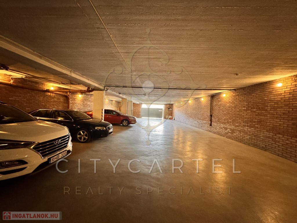 A pince szinten 13 gépkocsi tárolására alkalmas garázs van, de az udvaron és közvetlenül a ház előtt is elég sok autó elfér.