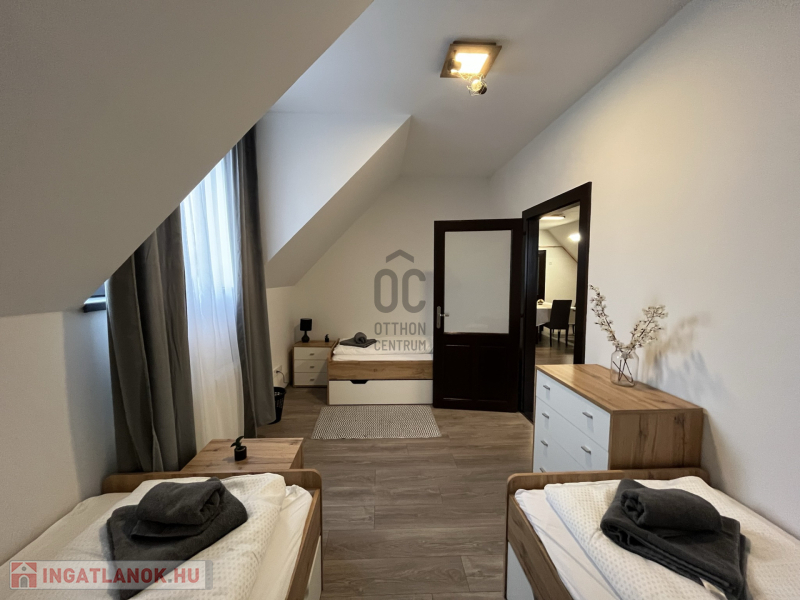 Emelet: felújított, vendéglátásra alkalmas helyiségek, Nappali + 4 hálószoba, 2 fürdőszoba, amelyek tovább bővítik a hasznosítás lehetőségeit.