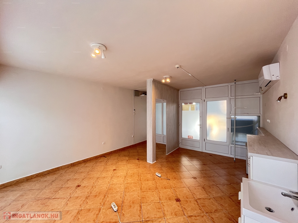 Kaposváron a belvárosban, az Irányi Dániel utcában, rendezett társasház 1. emeletén található 27 m2-es - akár azonnal is birtokba vehető - kozmetikának, fodrászatnak, vagy irodának alkalmas üzlethelyiség eladó. Az üzlet fűtése és a hűtése légkondicionálóval megoldott, a melegvíz ellátása Ariston villanybojlerrel biztosított. Az ingatlan a lokációja és kialakítása végett akár befektetésnek is kiváló lehetőség! Amennyiben az ingatlan felkeltette az érdeklődését, kérem hivatkozzon a 49. számú ajánlatra! Irodánk címe: 7400 Kaposvár Irányi D. u. 9.