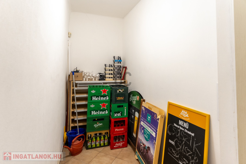 A kiszolgálótérhez iroda, saját mosdó, raktár és a dohánybolti rész tartozik.