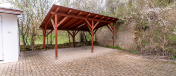 Az udvarban fedett beálló és nyitott parkoló is rendelkezésre áll.