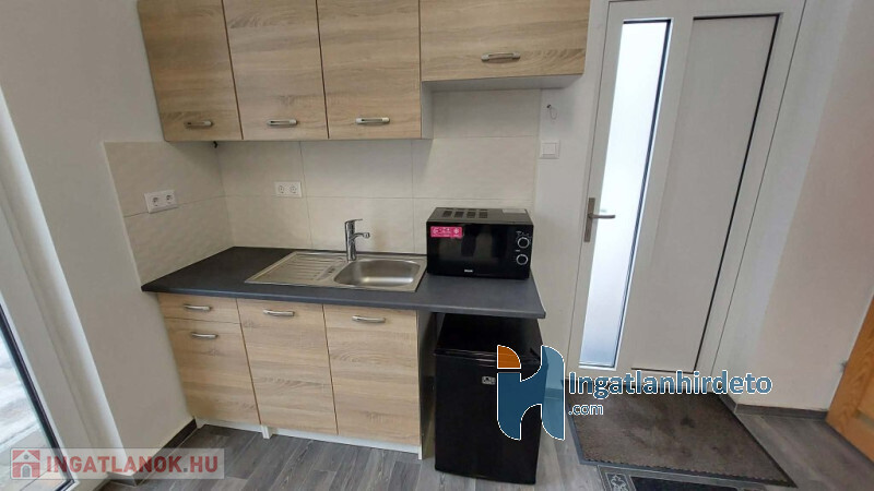 Elhelyezkedése: Társasház Emeleti elhelyezkedés: Földszinten Tájolása: Nyugati tájolású Állapota: Újszerű Komfort besorolása: összkomfortos Építési éve: 2021 Alapterülete: 30 m2 Szobák száma: 1szoba Közművek: Víz, Villany, Csatorna Fűtés módja: Egyéb Építési mód: Tégla Parkolási lehetőség: Telken, Parkolóban Kilátás: Udvari kilátás Napelem: Nincs Jellemzői: Alacsony rezsi, Csendes környék, Jó közlekedés, Redőny, Légkondicionáló, Amerikai konyha, Beépített konyhabútor, Autóbeálló, Kert, Kerítés, Egyedi vízóra , Zöldterület, Kapunyitó automatika, Jó közbiztonság Energetikai besorolás: B Tv, Internet: Internet Közelben: Iskola, Óvoda, Helyi autóbuszállomás, Orvosi rendelő, Bolt, Gyógyszertár, Postahivatal, Vendéglátó egység Rezsi költség(Ft): 12000 Terhelések: Tehermentes ingatlan Eladásra vonatkozó információk: Az ár tartalmazza a teljes berendezést, Azonnal beköltözhető