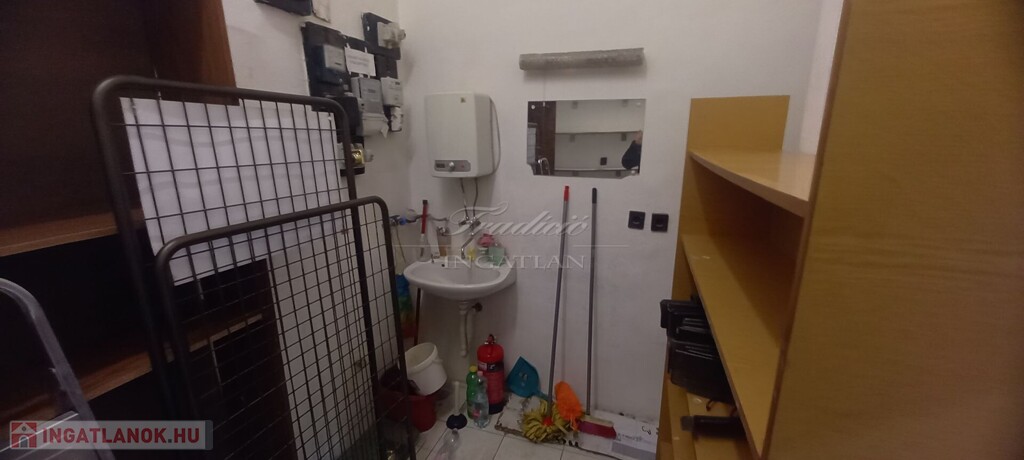 A raktárhelyiségen egy mosdó is beszerelve, a Wc bent az udvaron található.