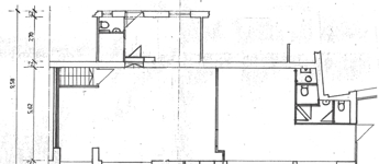 Elosztását tekintve két tágas és világos helyiségből (igény esetén összenyitható), két wc-kézmosóból, egy teakonyhából és egy nyitott helyiségből, illetve egy alagsori részből áll.