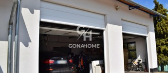 - 100 m2, nagy belmagassággal (5 m-nél magasabb), 2 elektromos garázskapuval (2 db : 3,5 m X 2,5 m)