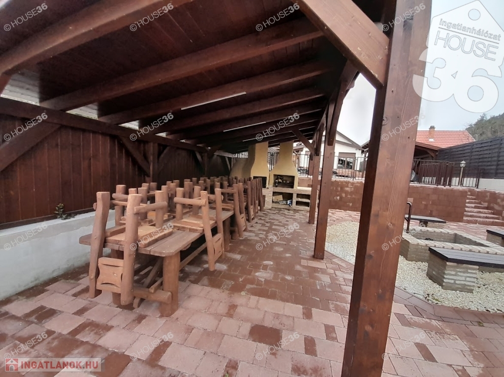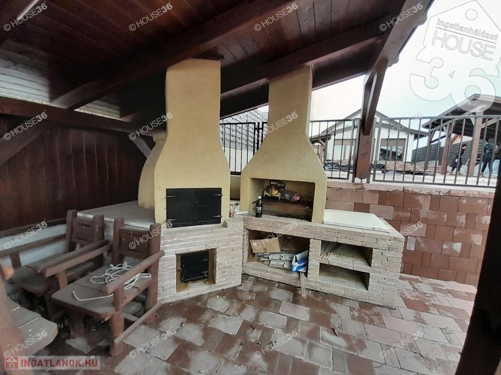 - fedett kerti kiülő épített kemencével, stb.