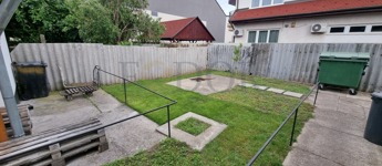 A 540 nm-es telek magában foglal egy kertet a személyzet számára, dohányzásra kijelölt helyet, árubeszállítást biztosító bejáratot, valamint két autó számára parkolási lehetőséget. Az utcai parkolás ingyenes.