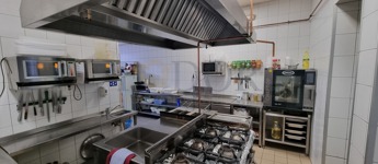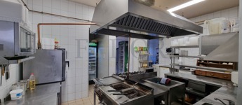 A konyha modern és professzionálisan felszerelt: rozsdamentes munkafelületek, hatékony elszívó rendszer, ipari mikrók, kombipároló, pizza sütő, hűtők és további eszközök biztosítják a gördülékeny működést. Az ingatlan tartalmaz továbbá konyhai előkészítőket, raktárakat, személyzeti öltözőt, irodát és mellékhelyiségeket is.