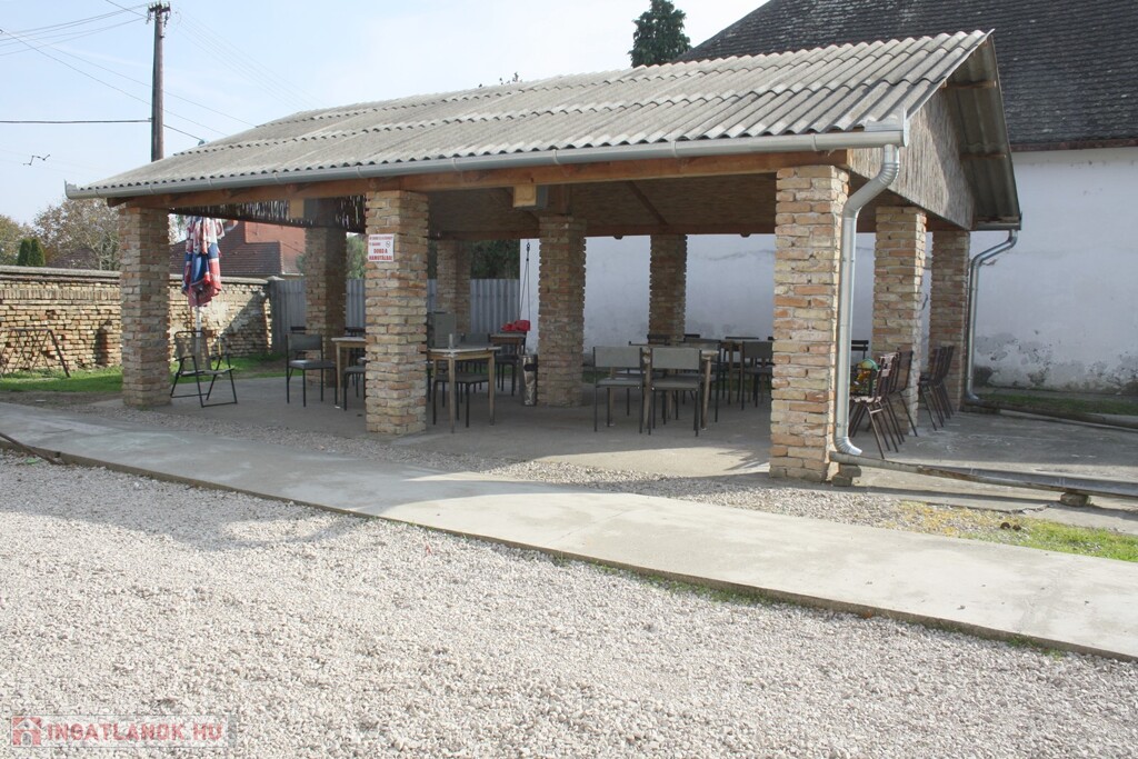 Az udvarban fedett, 40 nm-es kerti kiülő.