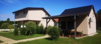 Zala vármegye, Kerkabarabás, közel 1 hektáron bejáratott magánszálláshely eladó. A szlovén határ közelében található Kerkabarabás nevét a mellette elhaladó Kerka patakról és a török eredetű "barabás" szóból kapta, melynek jelentése "vízimalom". A település a Göcsej jellegzetes dombos vidékén fekszik, melyet erdők és rétek tarkítanak. A csendes, nyugodt környezet ideális pihenésre, kikapcsolódásra. A környék számos túrázási és kerékpározási lehetőséget kínál, és felfedezhetők a Göcsejre jellemző népi építészeti emlékek is. A 9926m2-es, körbekerített telken 5 épület, valamint parkosított, 10db lakókocsi beállóval is rendelkező (vízzel, árammal rendelkező) terület található. A tégla építésű, 100m2-es, 2019-ben felújított (vezetékek, burkolatok cseréje, szigetelés, korszerűsítés, stb), szigetelt, teraszos főépületben 2 hálószoba, nappali, két fürdőszoba, konyha, előtér, kazánház és szauna került kialakításra. Az épület melegéről központi fűtés (gázkazán) és cserépkályha gondoskodik. A közel 200m2-es udvari épületben apartman (2 szobával, nappalival, konyhával és fürdővel), 24 férőhelyes (jelenleg raktárként szolgáló) „rendezvényterem”, garázs, és 2db vizesblokk található. Az épület mellett helyezkedik el a felújítandó, 2mX8mX13,5m-es, gépészettel, fúrt kúttal rendelkező fedett medence. A szállást két, 3 éve épült apartman teszi teljessé, melyek közül a szinteltolásos, szigetelt, teraszos épületben nappali, konyha, étkező, fürdőszoba és hálószoba, míg a mellette található galériás apartmanban nappali, konyha, étkező, fürdő, és háló került kialakításra. Ezen apartmanok melegéről hűtő-fűtő klíma gondoskodik. Az összességében 24 férőhelyes, tehermentes szálláshely udvarán a gépjárművek parkolása megoldott.