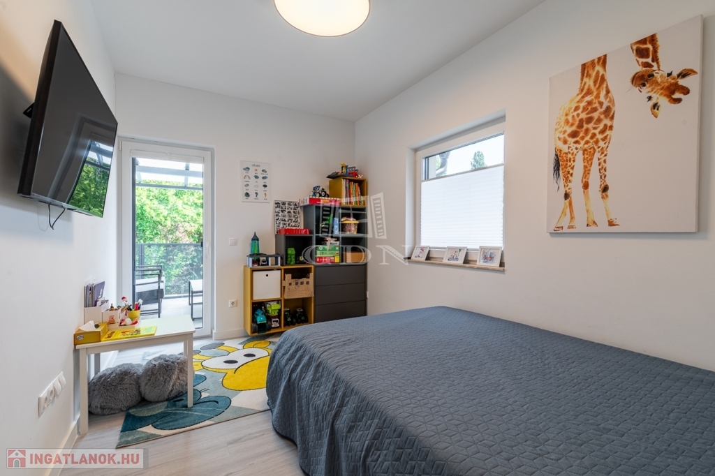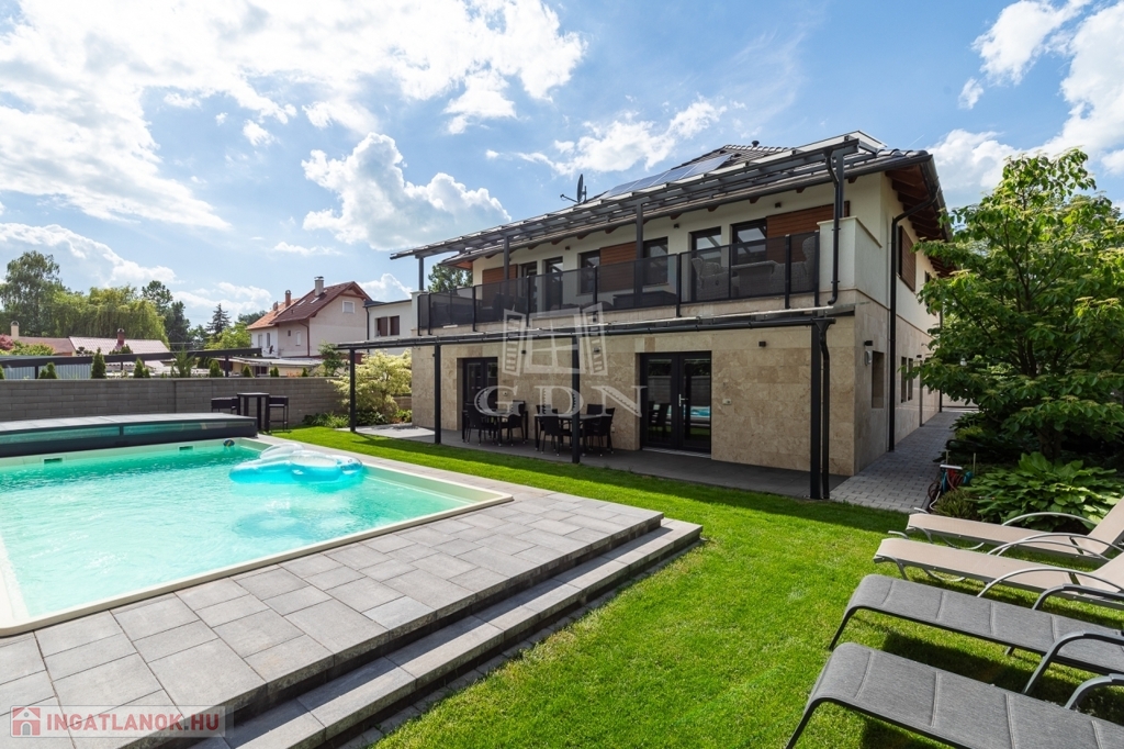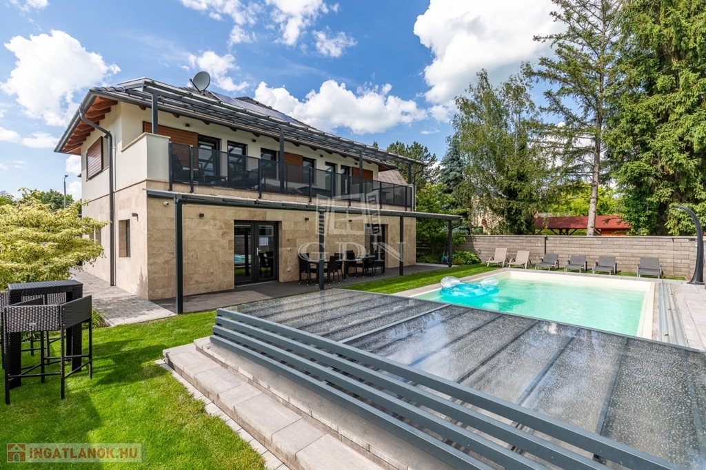 Az ingatlan kertész által gondozott kerttel, programozható öntözőrendszerrel, kamera-, beléptető- és riasztórendszerrel, valamint elektromos autó töltővel felszerelt.