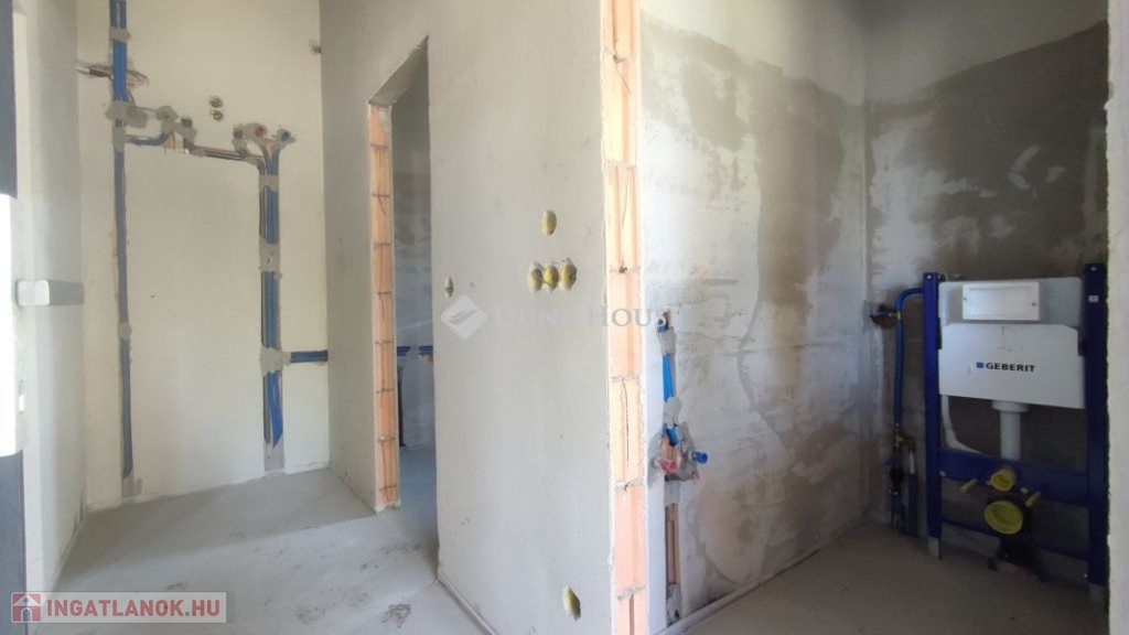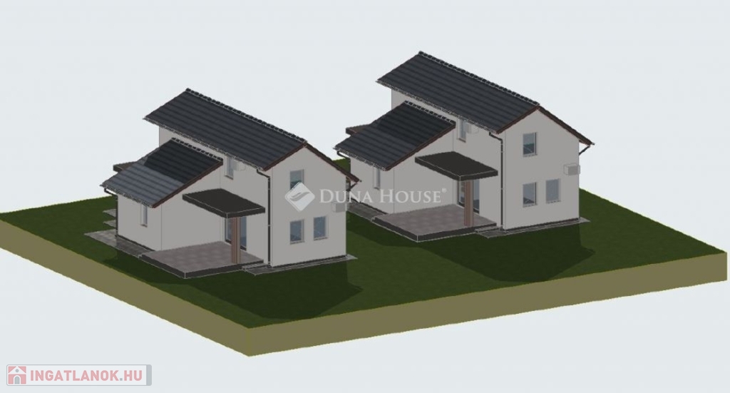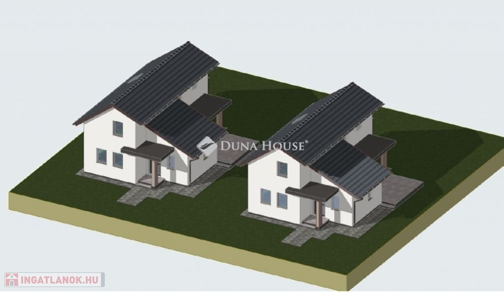 Az épületek teljesen egyformák, lakótere 75m2+18m2 terasz.