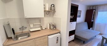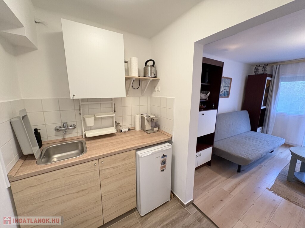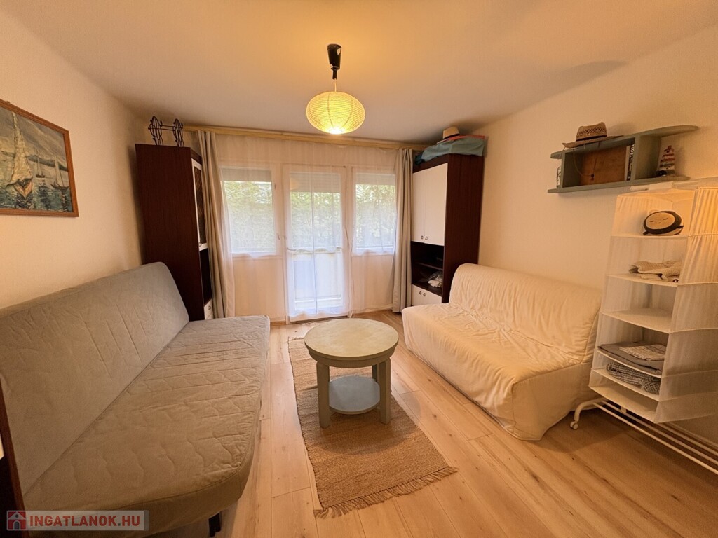 Balatonlellén a Szent István utcában - a partól gyalog csupán 2 percre - rendezett társasház magasföldszintjén lévő 22 m2-es - akár azonnal is birtokba vehető - nyaraló apartman a képeken látható berendezéssel együtt eladó. Az ingatlanban 1 szoba, erkély, előszoba-főzőfülke, zuhanyzó-wc helyiségek találhatóak. A fűtése légkondicionálóval, vagy elektromos fűtőpanellel megoldható. Tartozik hozzá egy kis tároló, valamint személygépkocsival a zárt udvarba be lehet állni. Energetikai besorolás: F