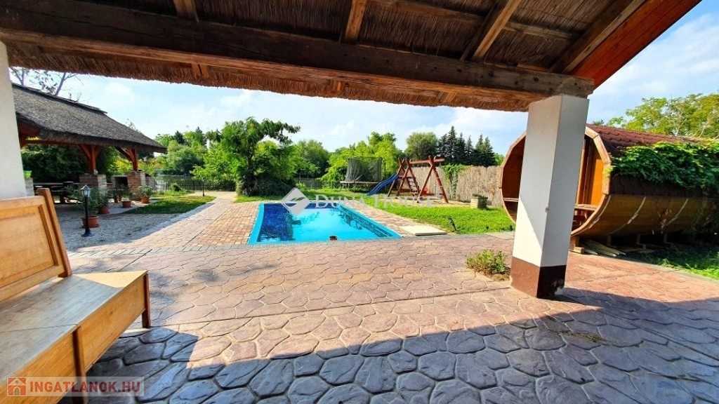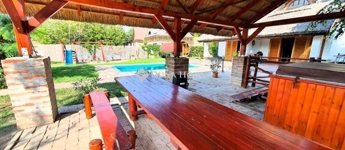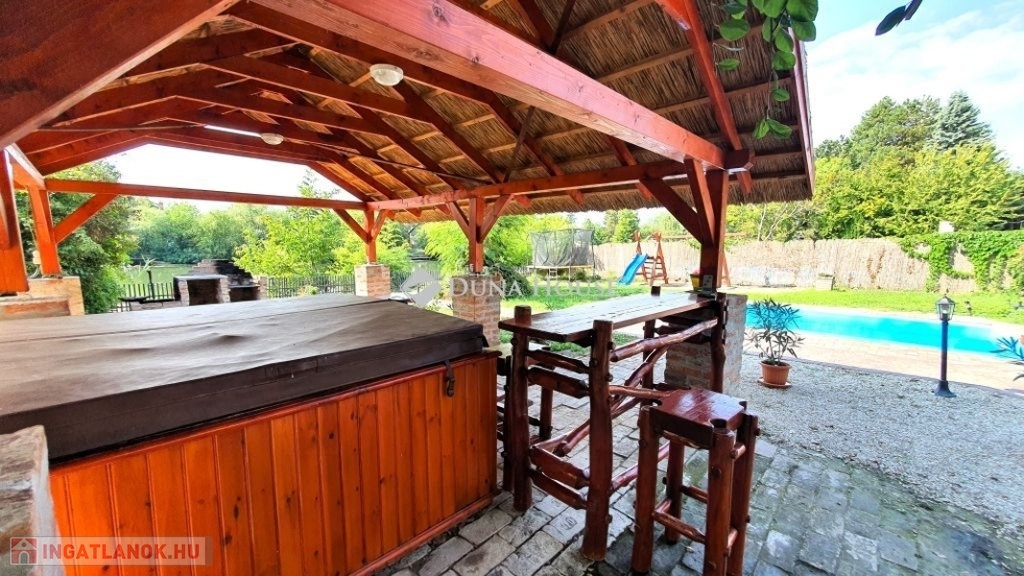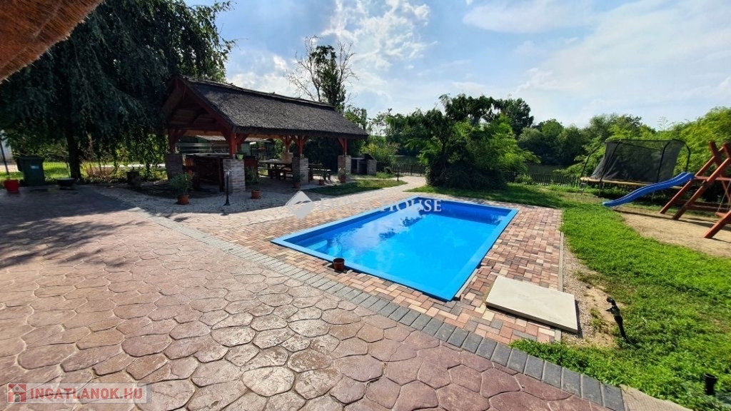 Eladó vízparti nyaraló Békésszentandráson!Békésszentandrás és Szarvas üdülőövezetében az Arborétum soron, közvetlen vízparton teljes berendezéssel együtt eladó egy 170 m²-es, két külön lakrészből álló, 10-12 férőhelyes nyaraló, saját stégekkel és prémium felszereltséggel.Főbb jellemzők:* 6 hálószoba, 2 fürdőszoba* Medence, fedett jakuzzi, szauna* Tágas, dupla telek, széles vízpart, 2 db. saját stég* Modern konyha, nagy közösségi terek* Játszótér, grillező, fedett terasz, rendezett kertMiért ideális választás?Befektetőknek: magas kihasználtság és bevételi potenciál, kiváló vendégértékelések (vezető szálláshirdető oldalakon 8.8/10 és 9.2/10).Magáncélra: nyugodt környezet, teljes kikapcsolódás, négy évszakos használhatóság.A nyaraló az azt üzemeltető céggel együtt eladó, amennyiben csak az ingatlant vásárolja meg, az árat 27%-os ÁFA terheli.