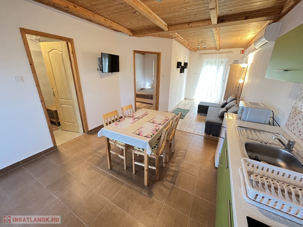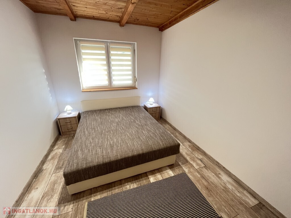 Buzsákon, Csisztafürdőn - külföldiek által kedvelt Balaton közeli településen - a Muskátli utcában, belterületi övezetben található, 2019-ben épület 76,72 m2-es újszerű állapotú üdülőház - eladó. Az épület 2 db 38,36 m2-es apartman. Mindkét apartmanban nappali-konyha-étkező, félszoba, fürdőszoba-wc, terasz helyiségek találhatóak. A telekre az apartmanokhoz 1 db vízóra és 1 db 32A. villanyóra került bekötésre. Az apartmanok fűtése és hűtése klímával, a meleg víz villanybojler megoldott, amelyet 2,5 kw. napelemes rendszer támogat, a szennyvíz emésztő gödörbe szikkasztón keresztül folyik. Mindkét apartmanhoz tartozik kocsibeálló, az udvaron szerszámos tároló és kerti bográcsozó, sütögető került elhelyezésre és leanderek, argentin selyemakácfa és törpe gránátalma bokor teszi hangulatossá a hátsó zöld területet, amely teljesen körbekerített. Az épületre külső 5 cm. szigetelés, a födémre 20 cm. üveggyapot lett elhelyezve. Az üdülőház befektetésre is kiválóan alkalmas, 300 méterre található a kisvasút állomása, 5 km.-re fekszik Fonyód, amit aszfaltos úton lehet megközelíteni, illetve 800 méterre található a gyógyfürdő, megépítették a napelemes parkot és egy sportlövészeti terület áll rendelkezésre akár versenyek céljából is. Telek: 492 m2