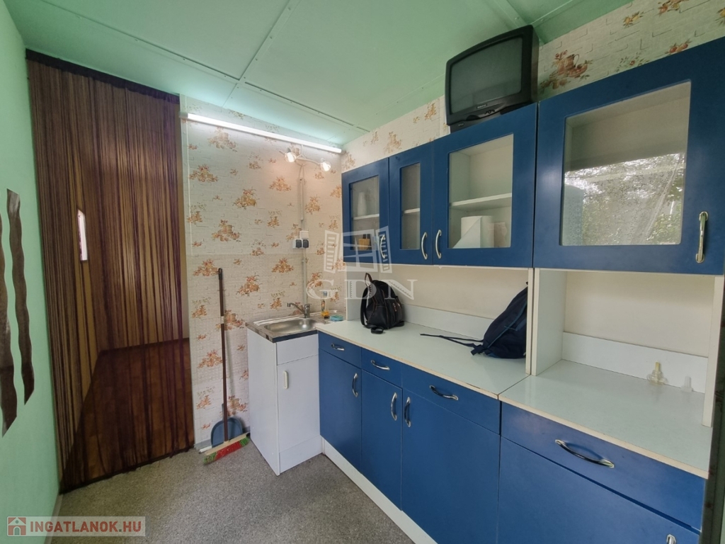A telken egy 27 m²-es, déli tájolású épület található, amely az alábbi helységekkel rendelkezik: