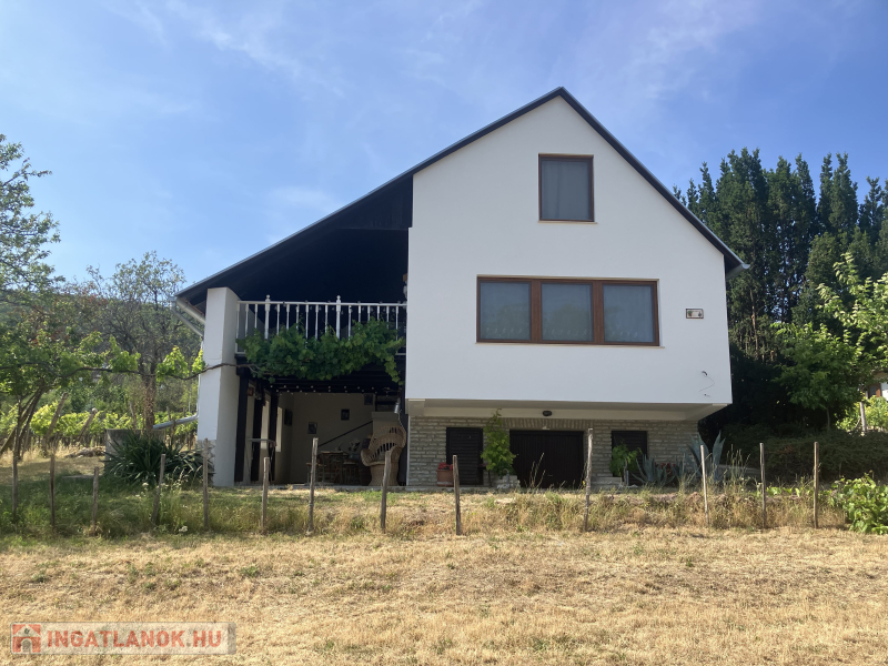 1977-ben épült, 95 m2-es, 2 szobás, kétszintes(+pince) nyaralóépület vált eladóvá egy 2673 m2-es (30 m utcafronti szélességű), szőlővel telepített telken.
