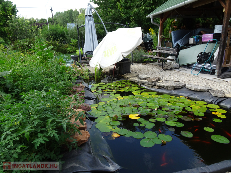 A 664 m2-es (15 m utcafronti szélességű) összközműves telek rendezett. Gyümölcsfákkal, dísznövényekkel telepített, egy 5 m2-es kerti tó és egy szerszámos tároló is található itt.