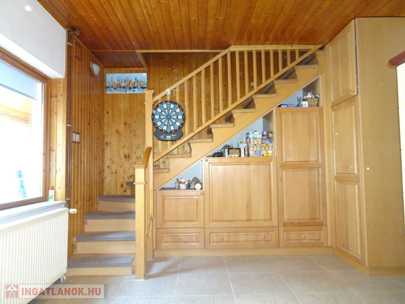 - a földszinten: egy félszoba, a nappali, egy káddal és zuhanyfülkével is felszerelt fürdőszoba + WC