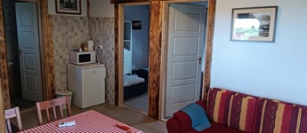 A belső tér NAPPALIBÓL, KÉT HÁLÓSZOBÁBÓL, ÉTKEZŐBŐL, FÜRDŐBŐL és WC-ből áll, így KÉT FŐ SZÁMÁRA kényelmes lakhatást biztosít.