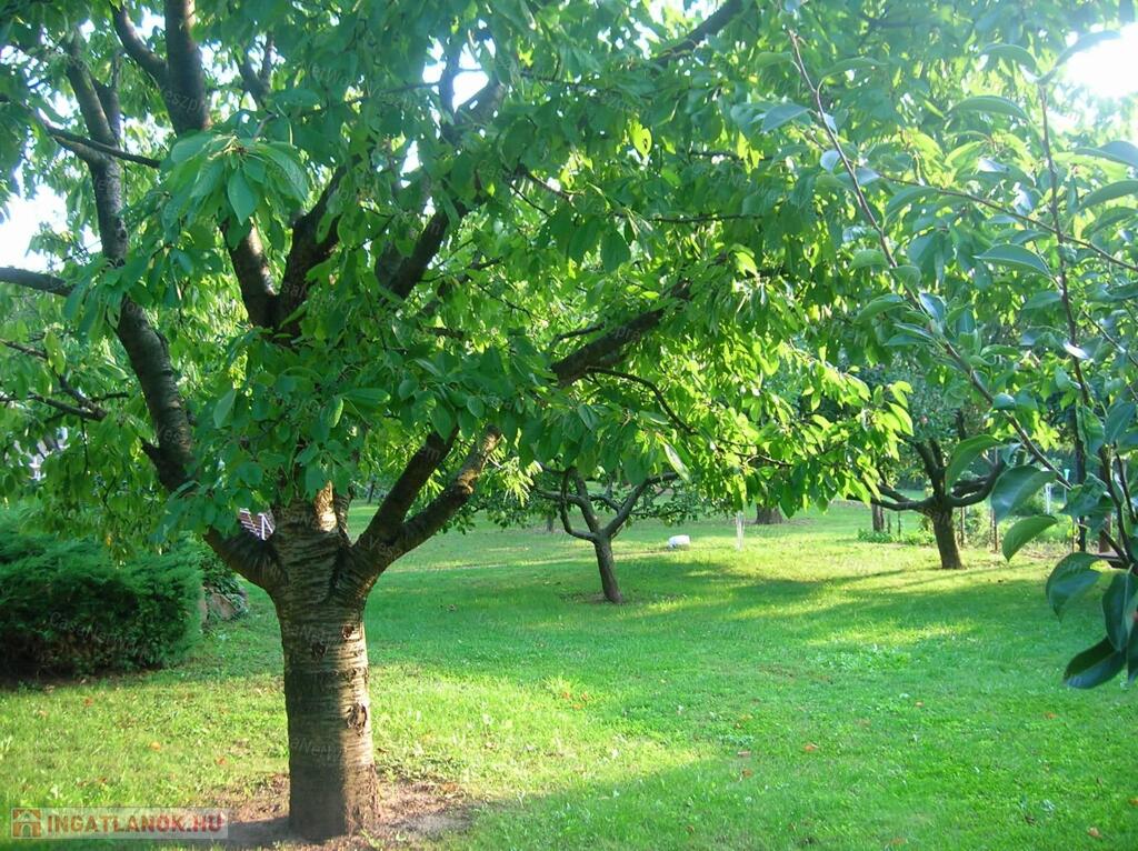 füvesített kertben termő gyümölcsfák - alma, cseresznye, meggy, sárgabarack,