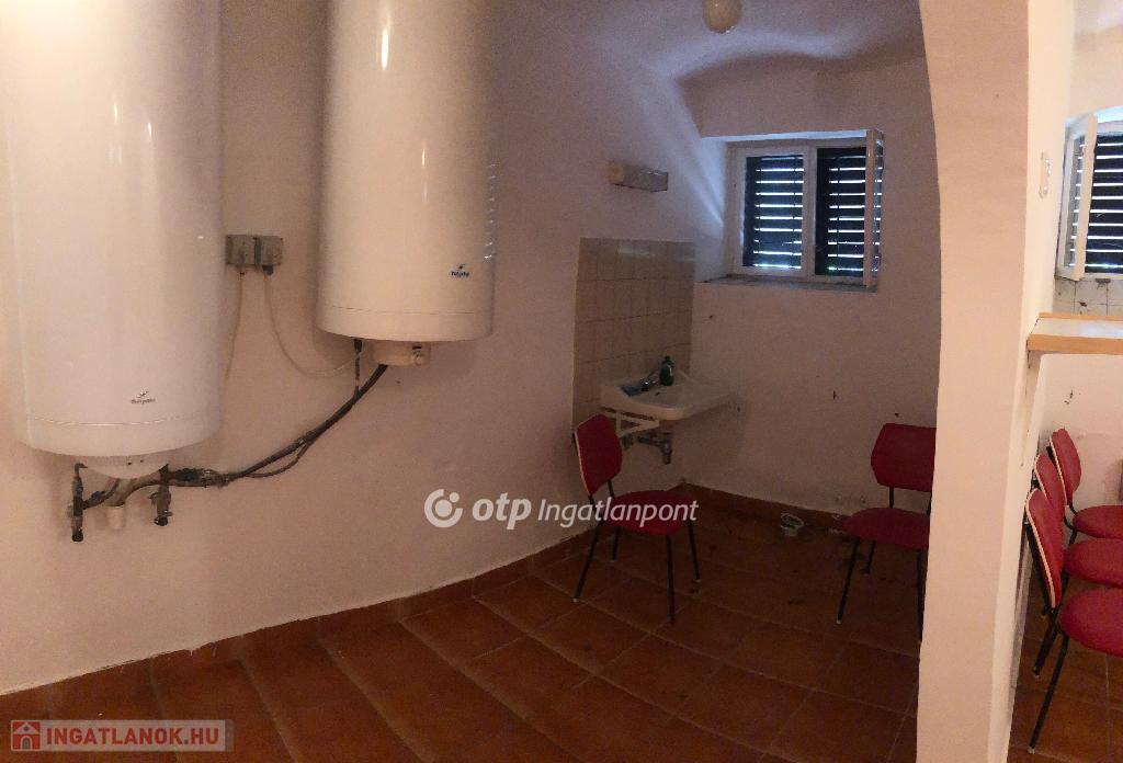 Fonyódon a Balaton partjától 500 m távolságra eladó egy 204,8 m2 egész évben lakható, felújítandó ingatlan! 828 m2-es telken helyezkedik el, három szintes. Az ingatlan kiváló befektetés lehet, hiszen az épület illetve a telek adottságai és a part közelsége tökéletes lehet, akár 6 különálló apartman kialakítására is! Alkalmas lehet céges üdülőnek vagy apartman kiadásra befektetőnek vagy akár, társas ingatlannak magánszemélyeknek is. Az épület legalsó szintjén található egy garázs (14,12 m2), amelyben egy zuhanyzó és wc került kialakításra. Szuterén megoldással, szinteltolással tervezték meg az épület, földszintjét (55,73 m2), ahol jelenleg konyhai helyiségek és étkezők találhatók nagy közlekedő helyiségekkel. Az emeleten 4 külön bejáratú szoba vár ránk és egy társalgó helyiség nagy terasszal. Mindegyik szobához tartozik vizesblokk. A földszinti helyiségek mázas kerámia burkolatot kaptak, míg az emeleti szobákban parkettát helyeztek le. Az emeleti fürdőszobákban és a wc-ben illetve a társalgóban szintén mázas kerámia burkolat került lehelyezésre.