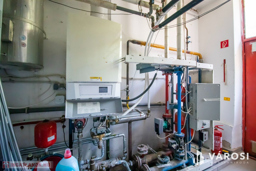 Az épület közművesítettsége teljes. Be van vezetve a villany, gáz, víz és a szennyvízcsatorna is. A fűtés és melegvízellátás gázüzemű kazánnal és használati melegvíztárolóval van megoldva és padlófűtéssel. A tetőn 15,2 kW teljesítmény napelemrendszer segít az elektromos energia megtakarítását. Az elektromos ellátás 3x32 Amper.