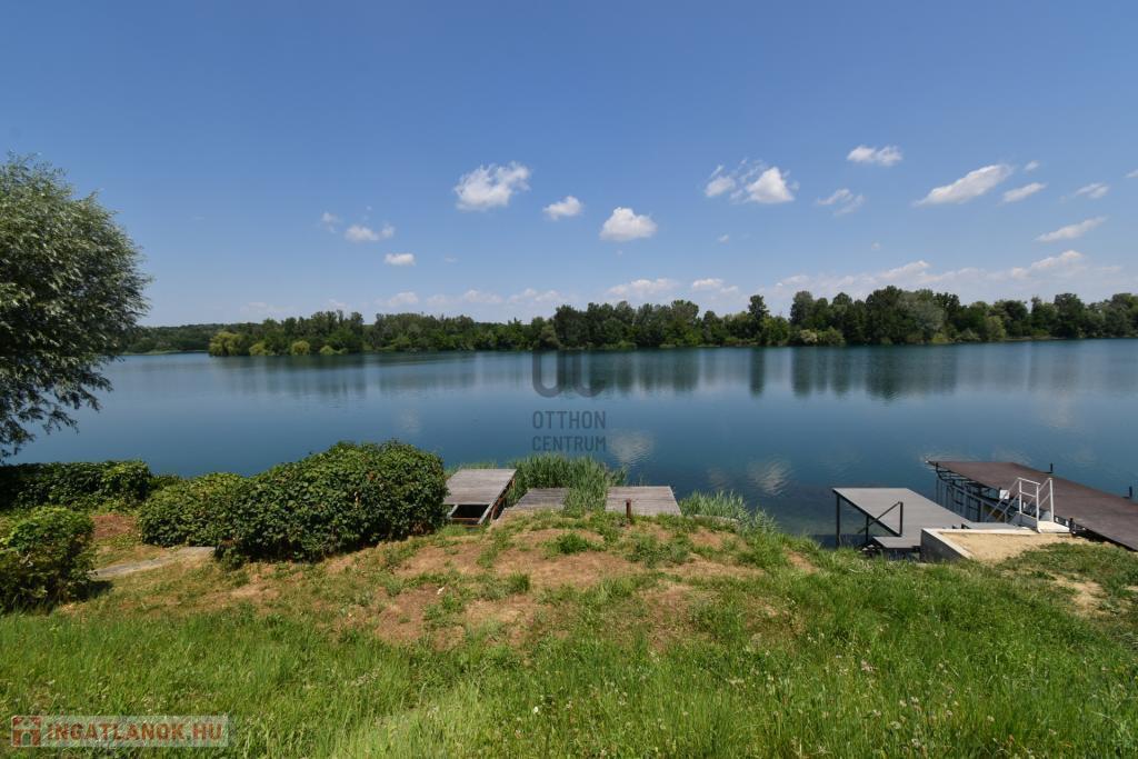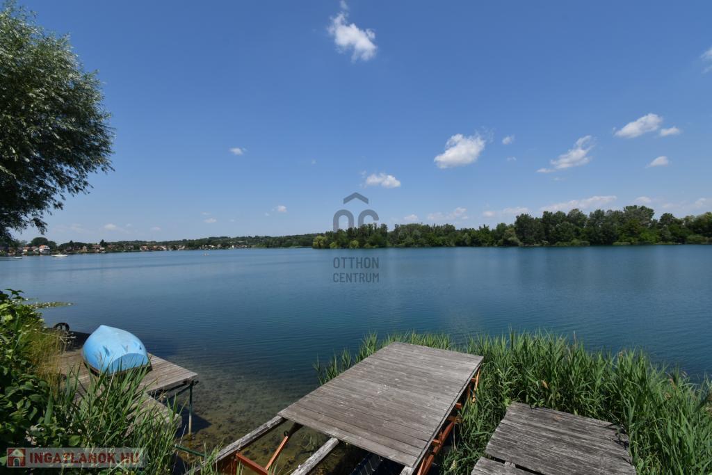 A 12 négyzetméteres terasz lehetőséget biztosít a pihenésre, ahol a tóra kitűnő kilátás van a naplementére.