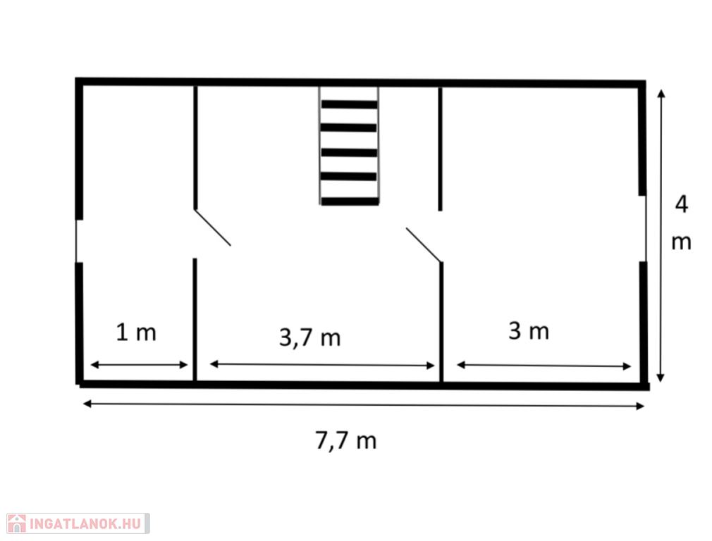 Emelet: hálószoba (1 franciaágy + 1 egyszemélyes ágy), fürdőszoba, valamint az előtérben egy kihúzható vendégágy,