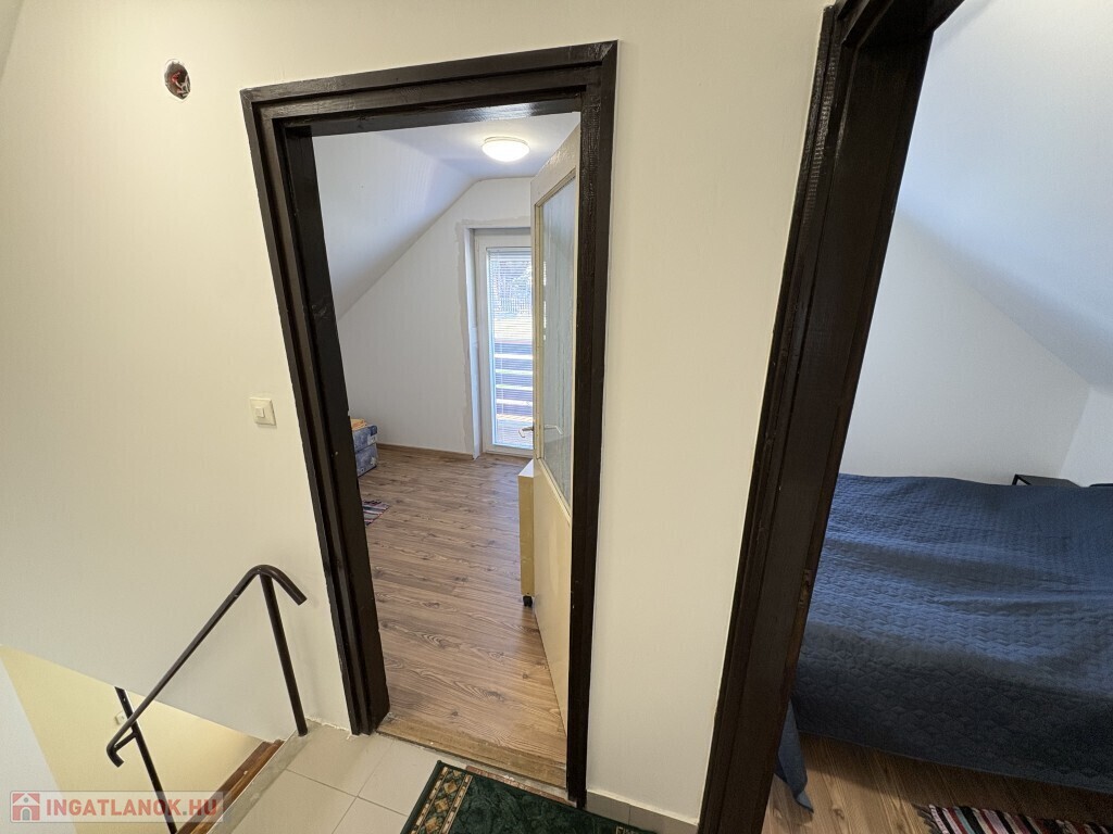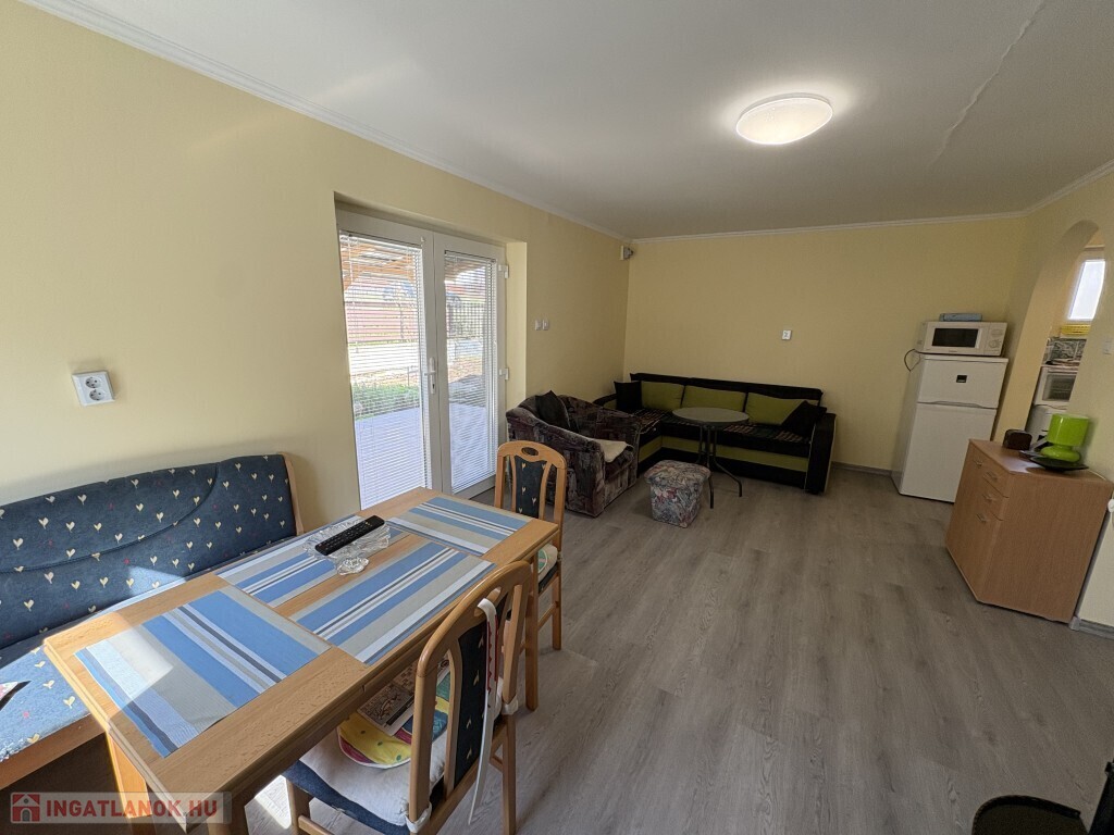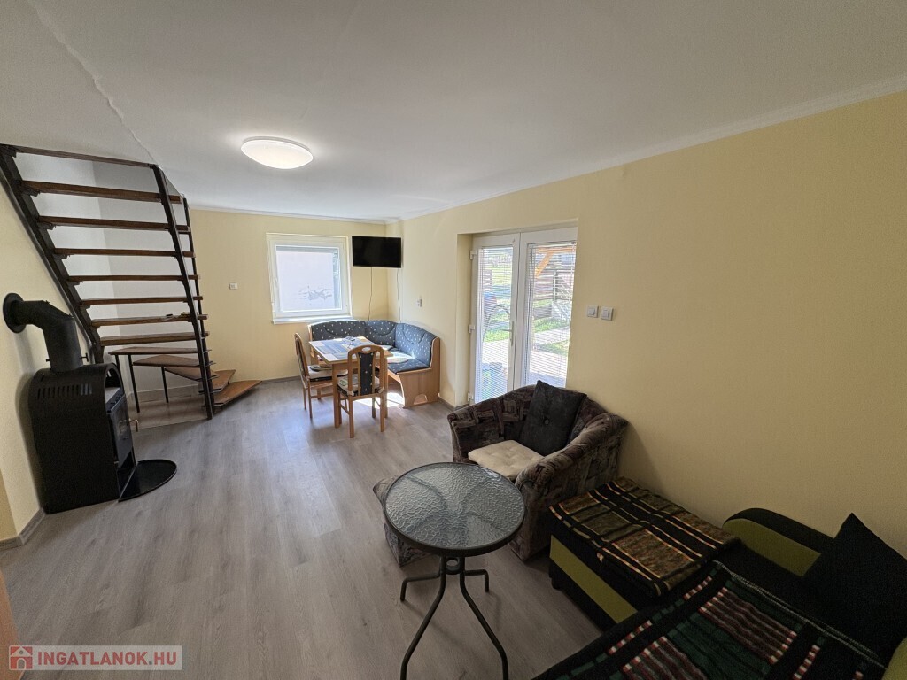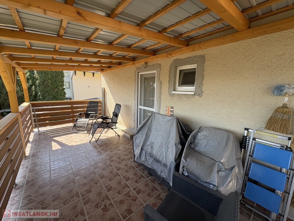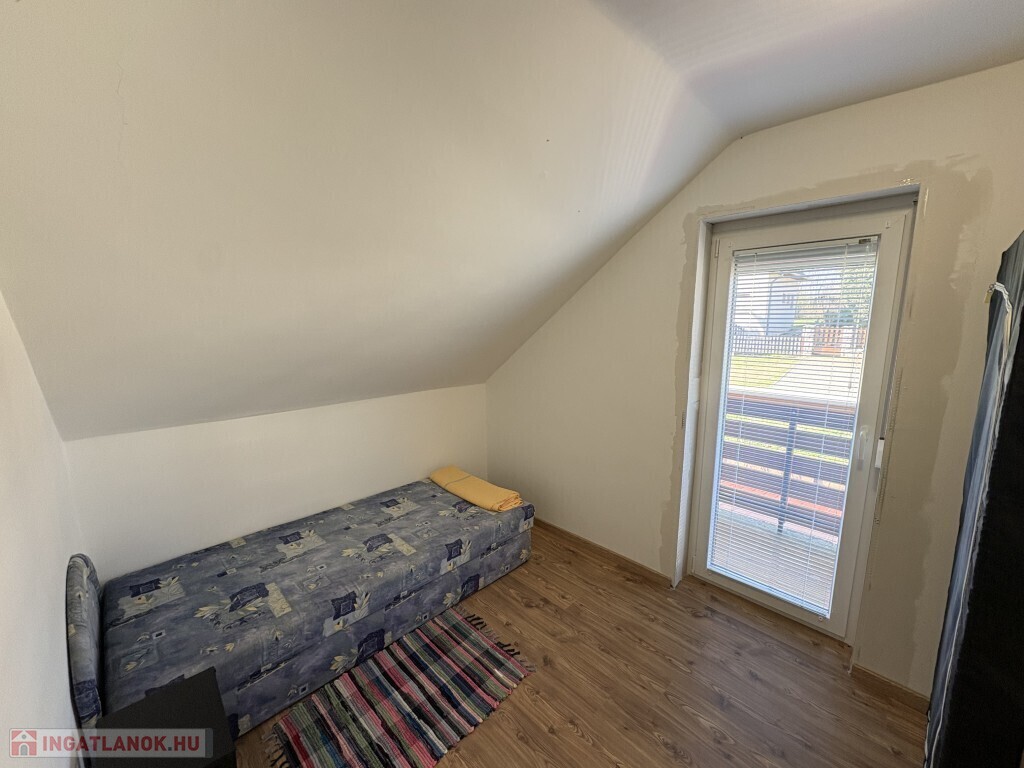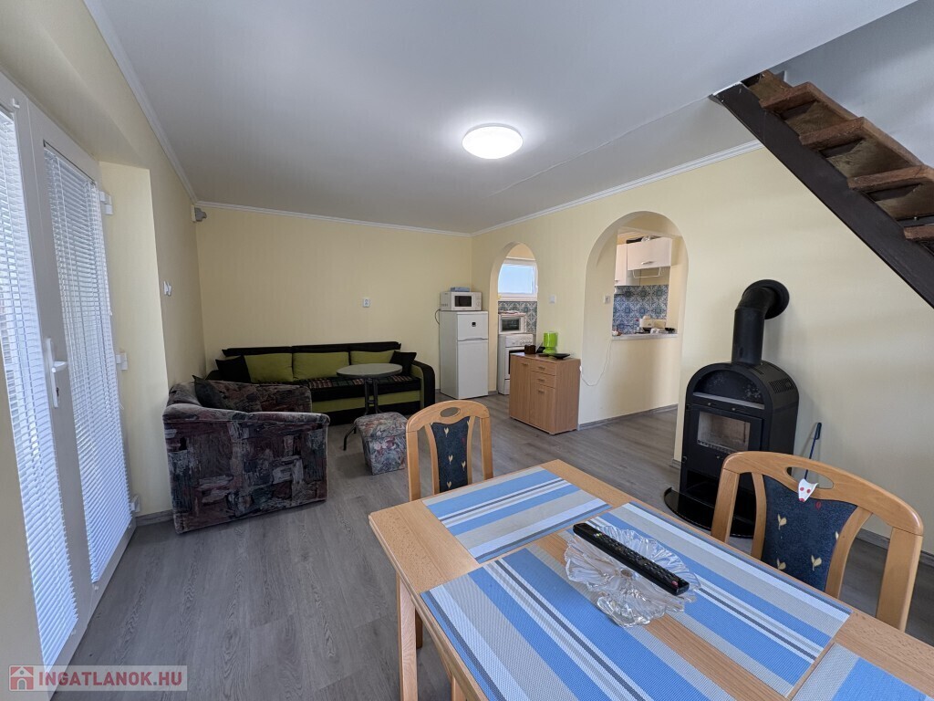 Igalban a gyógyfürdő közelében, 70 m2-es részben már felújított, akár azonnal is birtokba vehető nyaraló eladó. Az épület alsó szintjén nappali-előtér-étkező-konyha, 1 szoba, zuhanyzó, wc, valamint egy első és hátsó terasz találhatóak. A tetőtérben 3 félszoba, erkély, közlekedő, zuhanyzó, wc helyiségek kerültek kialakításra. Az épület alatt az udvar felől a fedett terasz alatt lehet bemenni a tároló-műhelynek használt pincébe. Az ingatlan akár télen is használható, a fűtése a nappaliban található kályhával megoldott, a meleg víz ellátását villanybojler biztosítja. A tulajdonos az épület tetejét kicseréltette, mind a tető, mind a födém szigetelve lettek, továbbá a nyílászárókat műanyagra cseréltette ki a, az ablakokra alumínium redőnyt és szúnyoghálót szereltetett fel, továbbá a szobák és a nappali burkolatát cseréltette ki, az első és a hátsó terasz is új tetőt, valamint burkolatot kapott és a kerítés is új. Telek: 378 m2 Amennyiben az ingatlan felkeltette az érdeklődését, kérem hivatkozzon a 388. számú ajánlatra! Irodánk címe: 7400 Kaposvár Irányi D. u. 9.