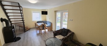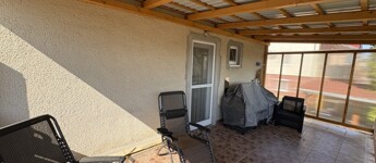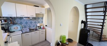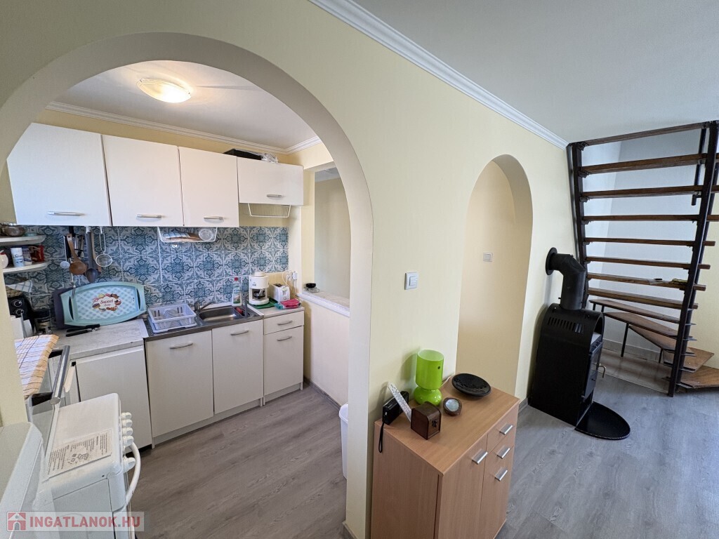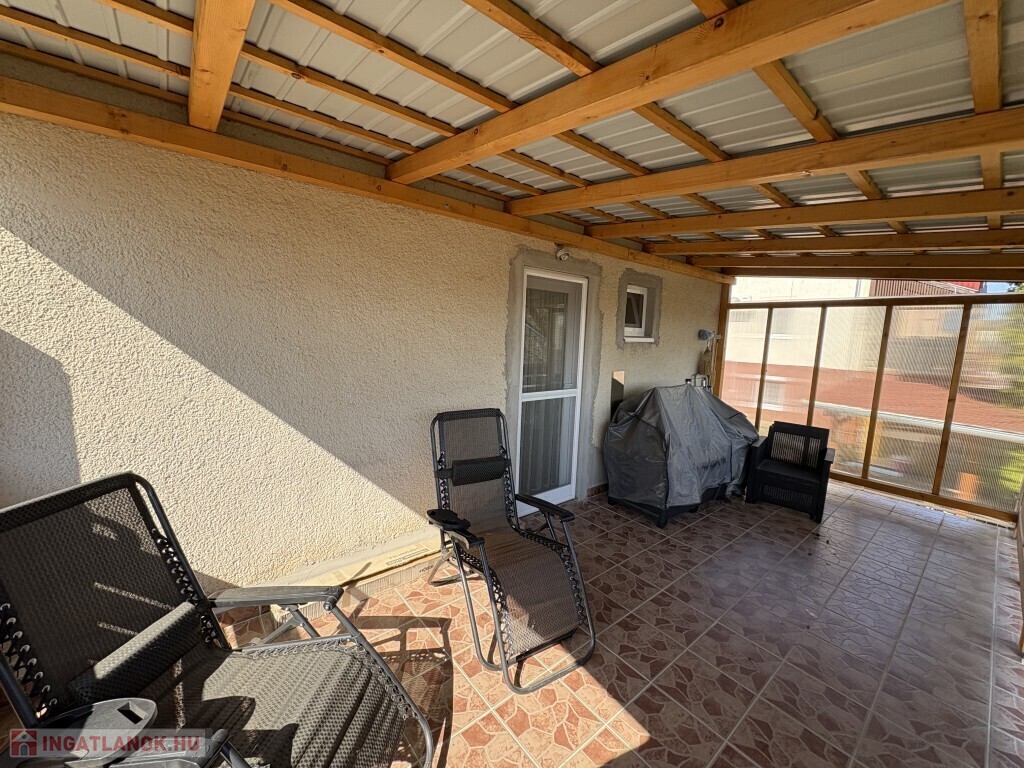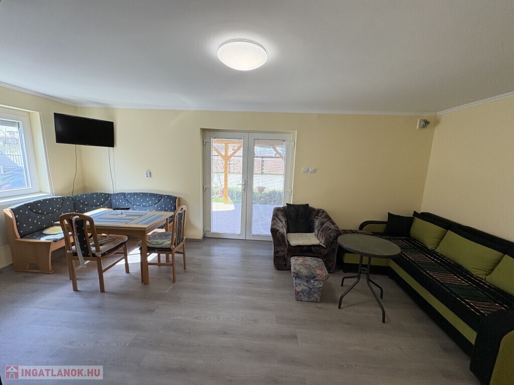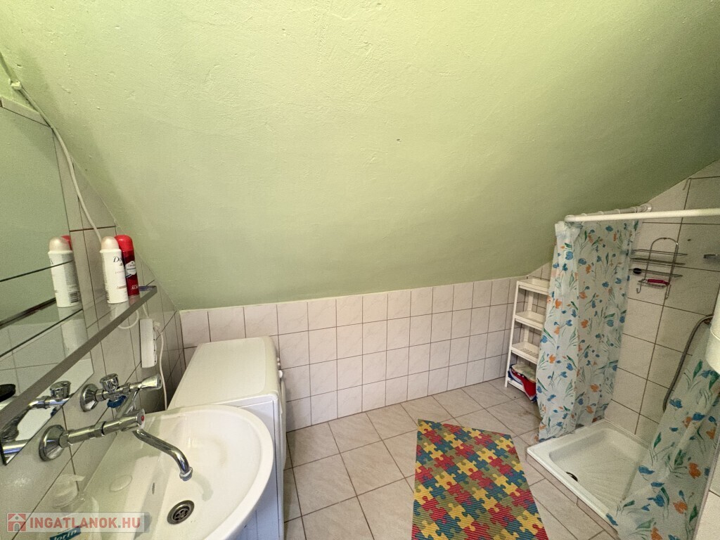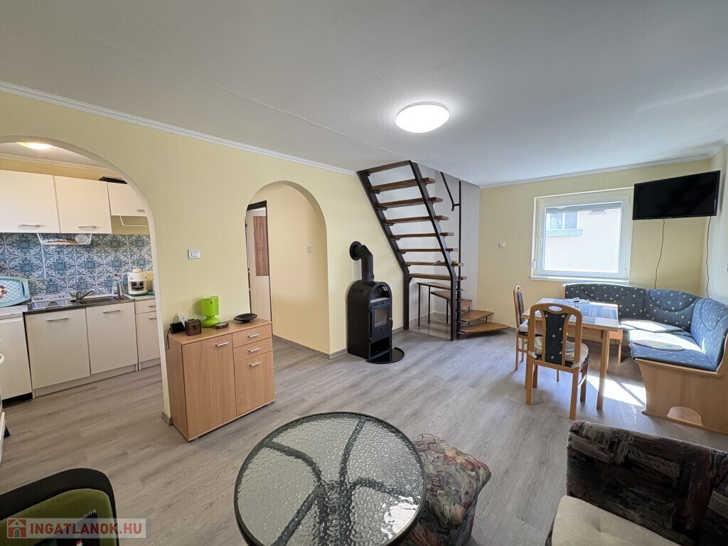 Igalban a gyógyfürdő közelében, 70 m2-es részben már felújított, akár azonnal is birtokba vehető nyaraló eladó. Az épület alsó szintjén nappali-előtér-étkező-konyha, 1 szoba, zuhanyzó, wc, valamint egy első és hátsó terasz találhatóak. A tetőtérben 3 félszoba, erkély, közlekedő, zuhanyzó, wc helyiségek kerültek kialakításra. Az épület alatt az udvar felől a fedett terasz alatt lehet bemenni a tároló-műhelynek használt pincébe. Az ingatlan akár télen is használható, a fűtése a nappaliban található kályhával megoldott, a meleg víz ellátását villanybojler biztosítja. A tulajdonos az épület tetejét kicseréltette, mind a tető, mind a födém szigetelve lettek, továbbá a nyílászárókat műanyagra cseréltette ki a, az ablakokra alumínium redőnyt és szúnyoghálót szereltetett fel, továbbá a szobák és a nappali burkolatát cseréltette ki, az első és a hátsó terasz is új tetőt, valamint burkolatot kapott és a kerítés is új. Telek: 378 m2 Amennyiben az ingatlan felkeltette az érdeklődését, kérem hivatkozzon a 388. számú ajánlatra! Irodánk címe: 7400 Kaposvár Irányi D. u. 9.