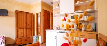 Az ingatlan vételára tartalmazza az apartmanok, a társalgó bútorzatát és használati tárgyait (étkészletek, ágynemű, törölköző stb), illetve a háztartási helyiség műszaki cikkeit (mosógép, szárítógép, nagykapacitású vasaló).
