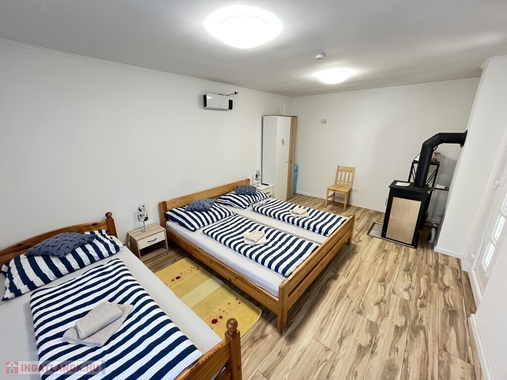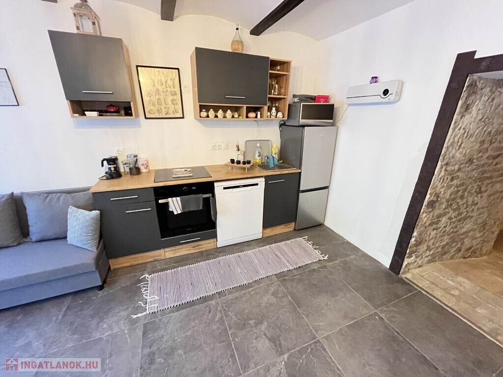 Kaposkeresztúron a Harmatvölgyben jelenleg vendégháznak kialakított 51 m2-es, zártkerti ingatlan teljes berendezéssel eladó. Az ingatlan alsó szintjén (22,5 m2) nappali-konyha-étkező, fürdőszoba, 12 m2-es pince, felső szinten 16,5 m2 szoba helyiségek találhatóak. A 2 db helyrajzi számon nyilvántartott teleken, rengeteg növény és gyümölcsös (3 db fehér eperfa, 3 db meggyfa, 3 db alma, málnabokrok, fekete szeder, ribizli, 6 parcella szőlőültetvény) találhatóak. Az épület 10 cm. külső szigetelést kapott, 32 A. villany lett kiépítve, fúrt kúttal történik a vízellátás, de nincs bevizsgálva, a meleg vizet villanybojler biztosítja, a fűtés vízteres kandalló által radiátoros fűtéssel és villany fali fűtőventilátorral megoldott, riasztó és kamera rendszer van telepítve, a TV és internet szolgáltatás Yettel hálózattal megoldva. A ház felett található egy 30 m2-es présház pincével, 2 db fatároló, a dombtetőről gyönyörű kilátás. A tulajdonosok a vendégházat 1,5 éve üzemeltetik, hamarosan készül hozzá egy weboldal is, amelyet oda adnak a vevőnek Telek: 2.089 m2 Energetikai besorolás: E