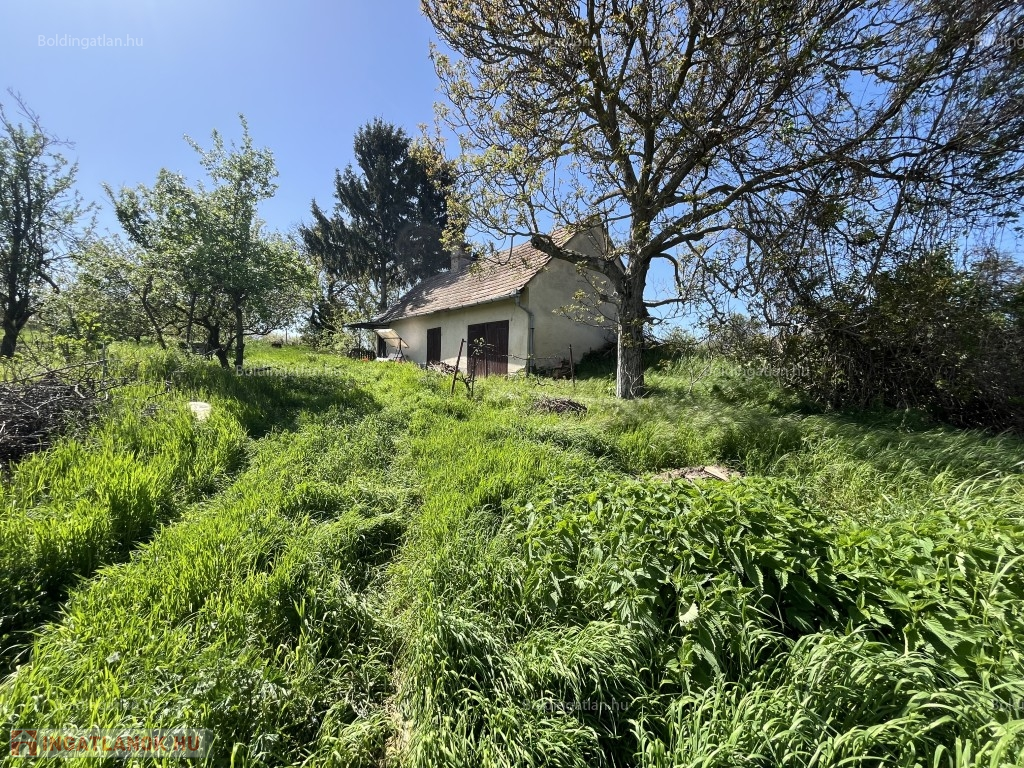 Kéthelyen - a Balaton közelében, csendes helyen - zártkerti övezetben - 56 m2-es hétvégi ház - a képeken látható műszaki állapotban eladó. A tégla épületben 2 szoba, konyha és egy akár garázsnak használható helyiségek található, illetve ebből a garázsból egy boltíves 15 m2-es pince is nyílik. Víz a telken lévő kútból használható, villany nincs. Telek: 1.902 m2