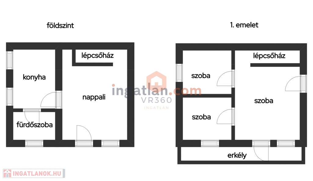 Alsó szint (48 nm): Nappali, étkező, konyha, zuhanyzós fürdő + WC, hangulatos kandalló – saját bejárattal