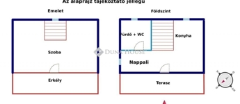 A házba a teraszon keresztül juthatunk be, ahol egy nappali és konyha fogad minket. Innen nyílik a fürdőszoba és a WC. Az emeletre felérve a hálószobába érkezünk, amelyhez erkély is tartozik. A telken víz és villany, a gáz pedig az utcában elérhető.