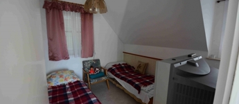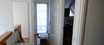 Emelet/tetőtér: 2 szoba + fél szoba, fürdő, erkély a Duna felé, melyre két szobából közvetlen kijárat van