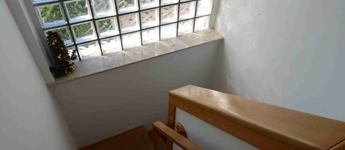 Az emeleti nyílászárók műanyagra lettek cserélve, alsó szinten még fa ablakok, ajtók.