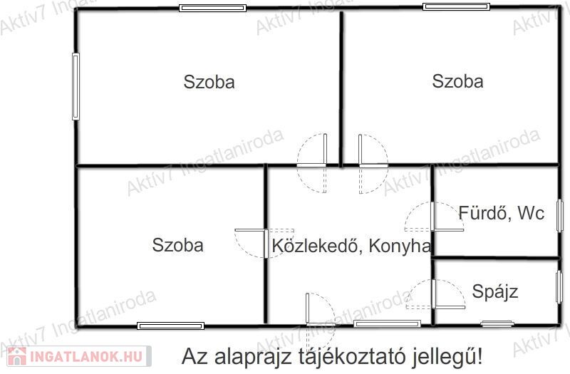 - 3 szoba, konyha, fürdő, wc, előszoba, spájz helyiségekkel,