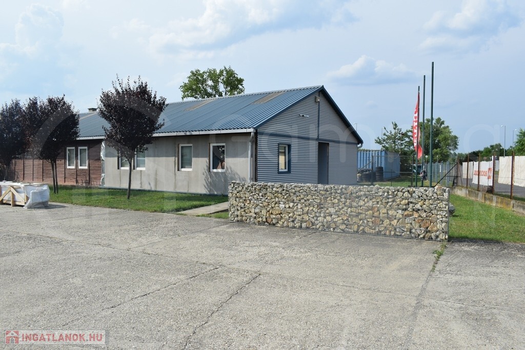 Szerencs ipari parkjában eladó egy 5309 m2-es sík telken egy 375 m2-es raktárépület + egy 550 m2-es iradaépület, bemutató terem, vizesblokk, és a műhely teljes közműellátottsággal.