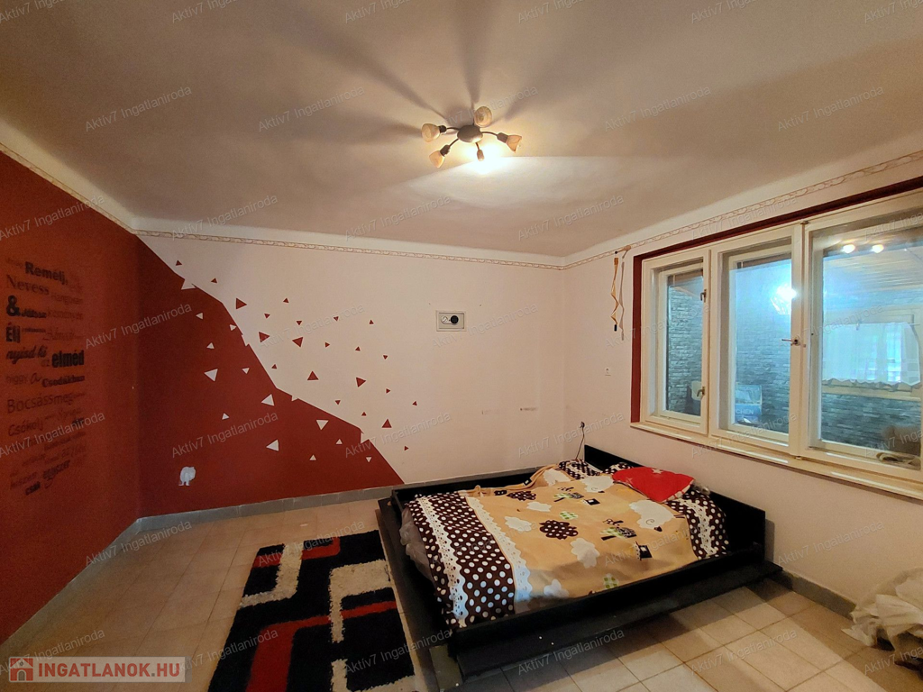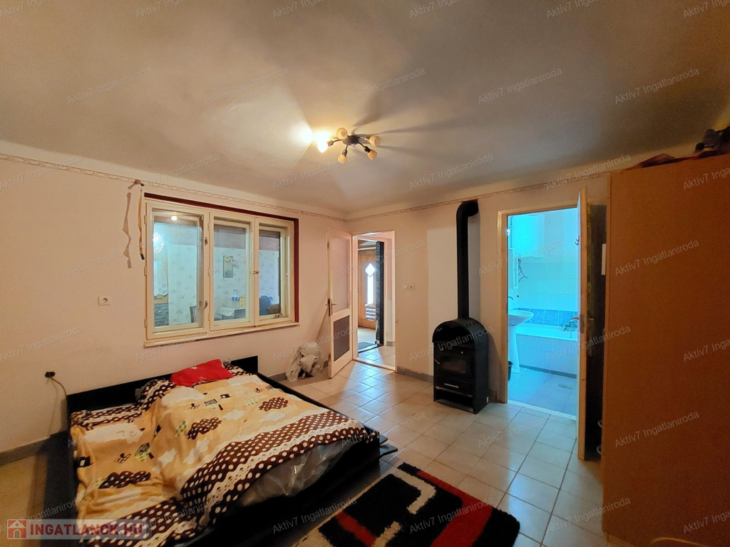 - tégla építésű ház: jelenleg egy lakószobából, kis konyhából, fürdőszobából (+wc), előszobából áll,