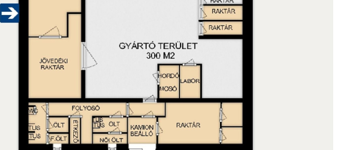 3 m, ipari padló a teljes területen, ami összesen 630 m2. Gázkazán