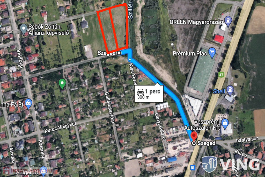 Eladó Szeged-Baktó városrészben 6369 m2 terület, mely jelenleg "szántó" besorolású.
