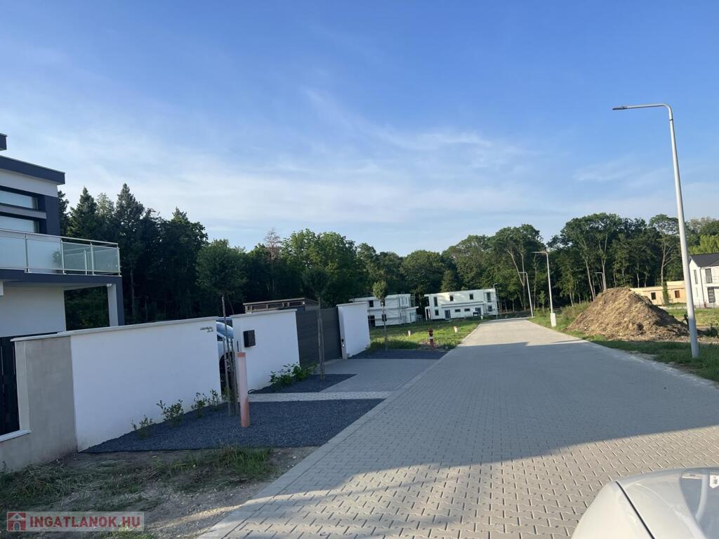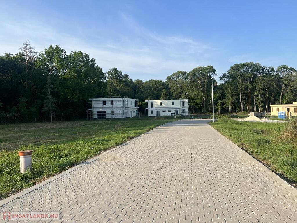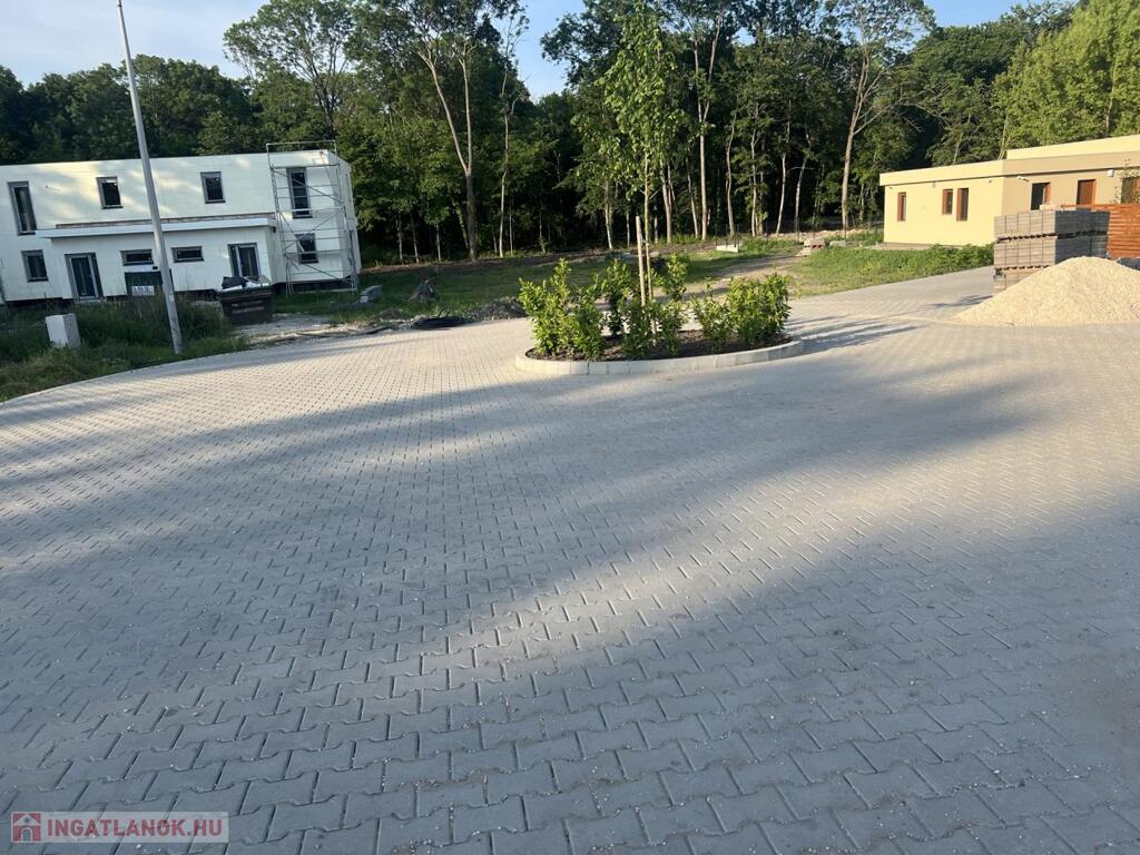 A telek öszközművesített (víz,villany,csatorna). A lakóparkot átszelő térkövezett út pedig a már elkészült.