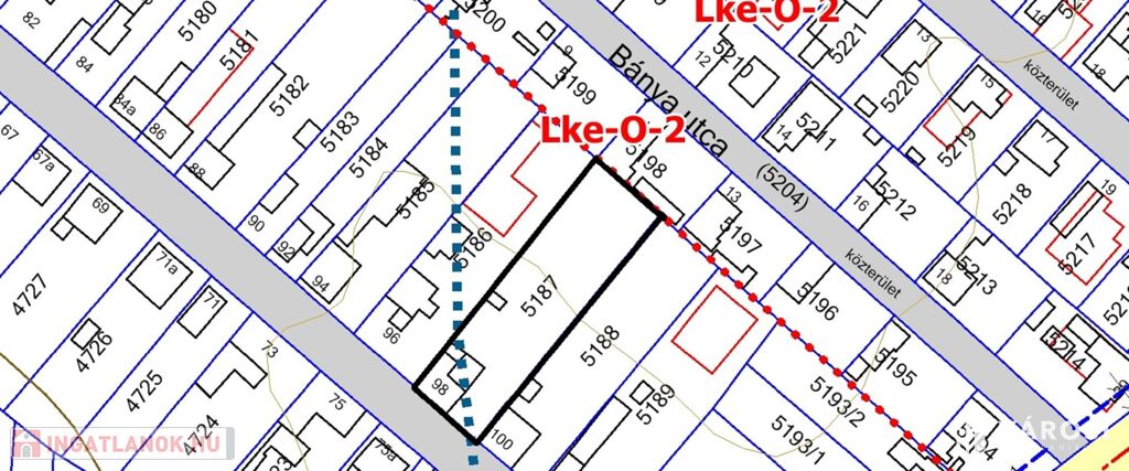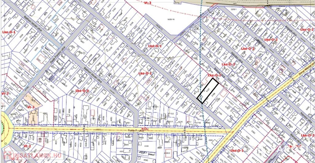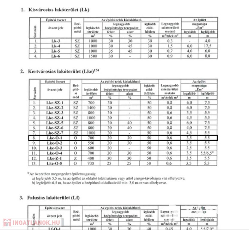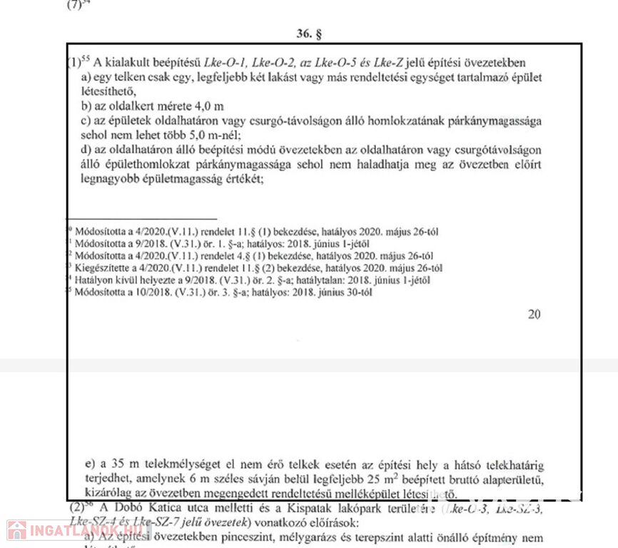 A telek besorolása: Lke-O-1-es amely 1 ikerház és melléképület(akár iroda vagy kereskedelmi egység) elhelyezésére ad lehetőséget.