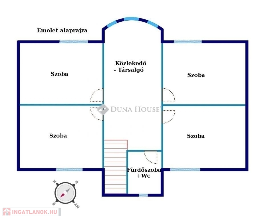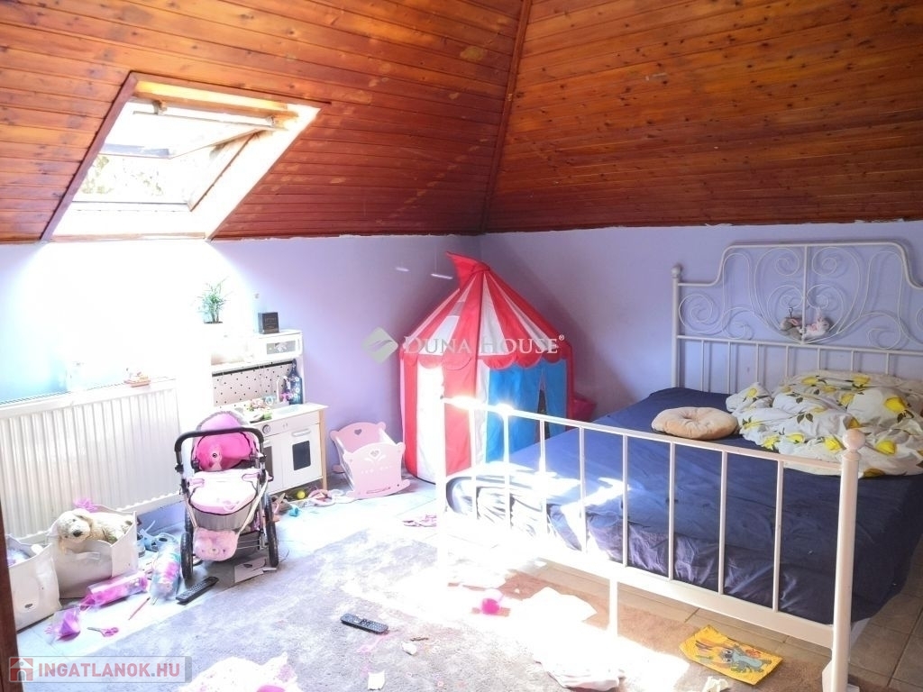 A felső szint az alsó szint előteréből elérhető, itt egy nappaliként, társalgóként is használható, tágas helyiségből nyílik 4 hálószoba, és egy fürdőszoba + wc. Az ingatlan kitűnő elrendezésű, szobái, a nappalit is beleértve mind külön nyílóak. A helyiségek terei igen tágasak, mely egyedi, páratlan hangulatot kölcsönöz az egész lakótérnek.