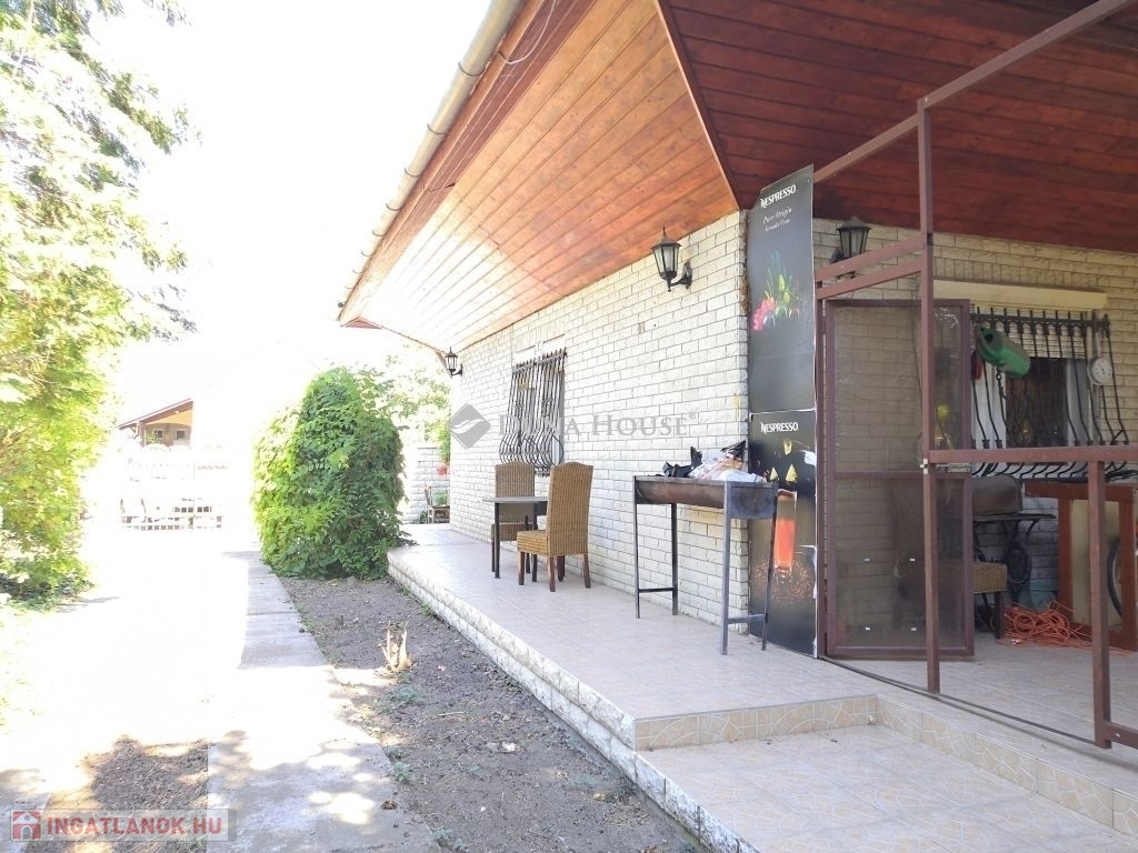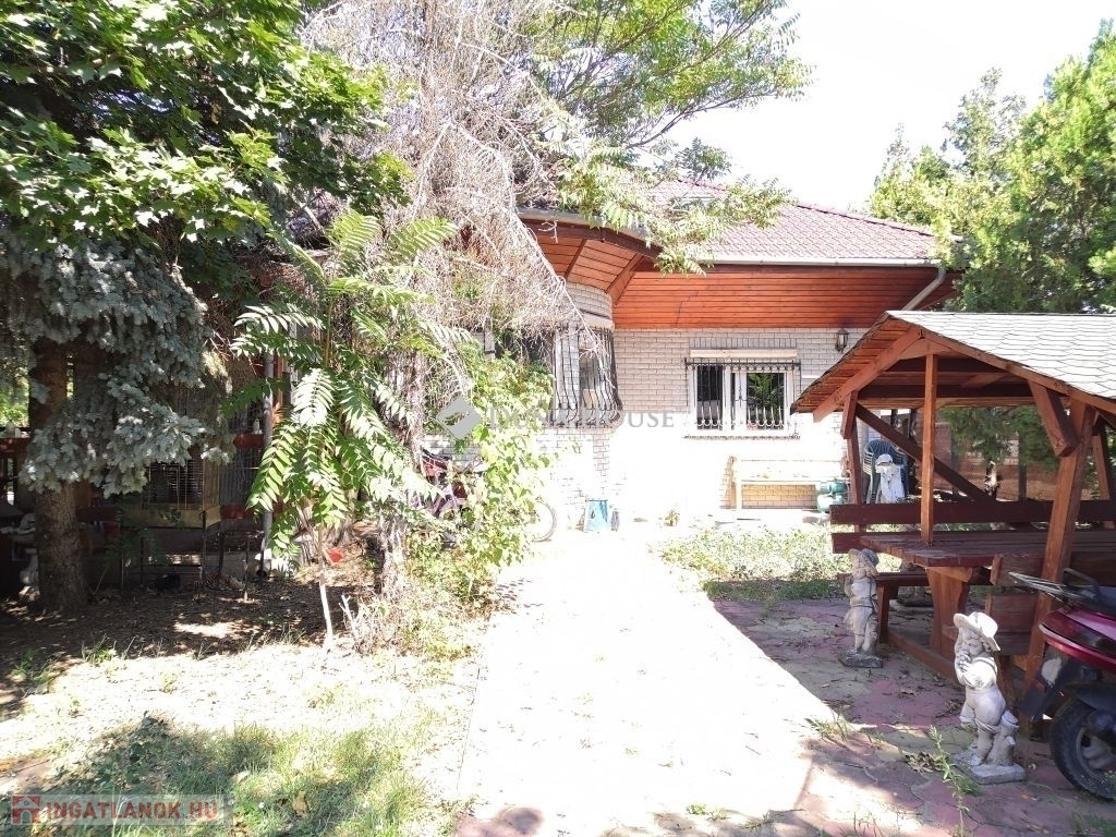 Az épület 900m2-es, rendezett telken helyezkedik el, melyen ezen kívül egy tágas garázs is helyet kapott. Minőségi térkővel kilakított járdák és gépkocsibeálló biztosítják a kényelmes közlekedést. Kerti kiülő, sütögetőhely szintén rendelkezésre áll, továbbá medence felállításához is rendelkezésre áll lebetonozott terület. A beállást elektromos kapu teszi kényelmesebbé.