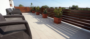 - Mind az emeleten, mind a földszinten hatalmas fedett teraszok, erkélyek találhatóak, melyek hozzájárulnak az extra nagy üvegezéssel a világos, napos belső terekhez.