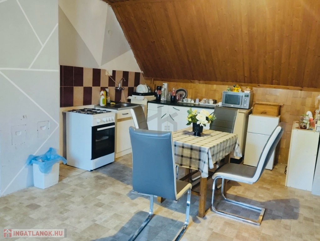 - a tetőtérben pedig két szoba, nappali-konyha-étkező és fürdőszoba-wc ( zuhanyzóval )