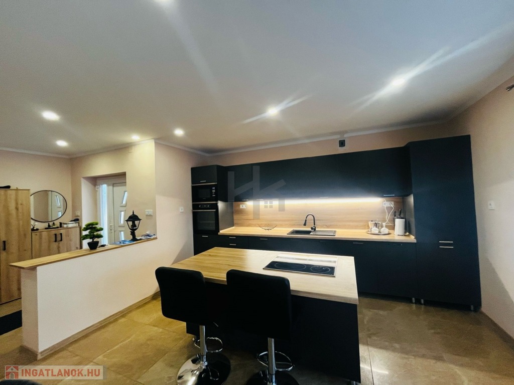 - a modern konyhabútor konyhaszigettel, beépített mosogatógéppel, mikrohullámú sütővel, tűzhellyel és a házban található teljes bútorzat a vételár részét képezi
